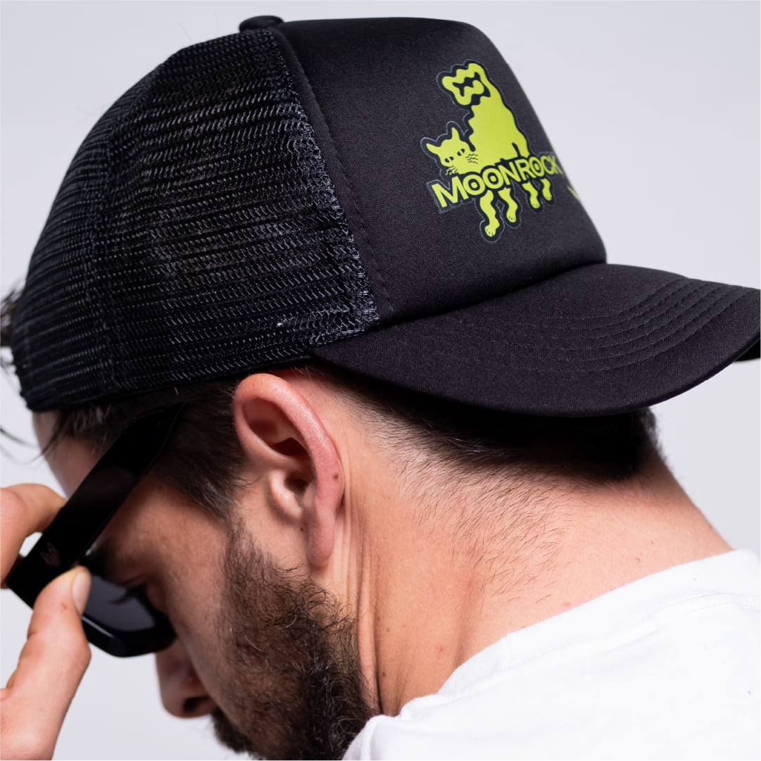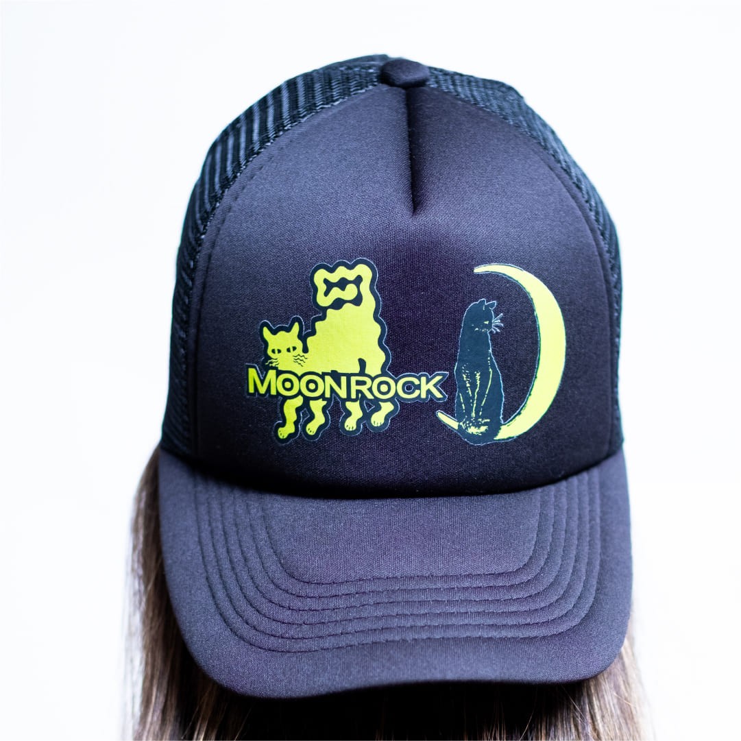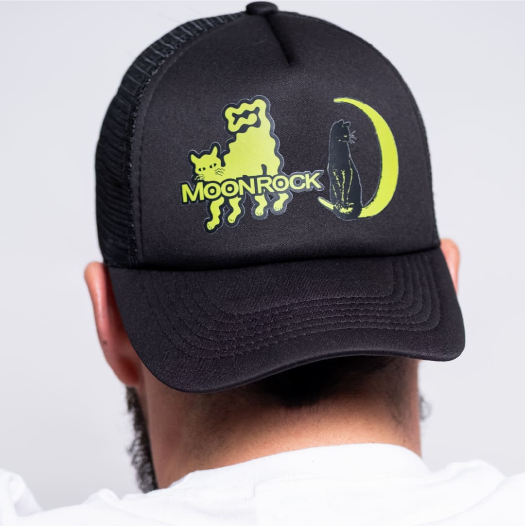 Gorra tipo jockey con diseño exclusivo Moonrock. Directo desde la galaxia gatuna que controla nuestras mentes y nos pone a disposición de nuestros michis. Comunícate sensorialmente con tu gato y recibe sus ordenes gracias a Moonrock.